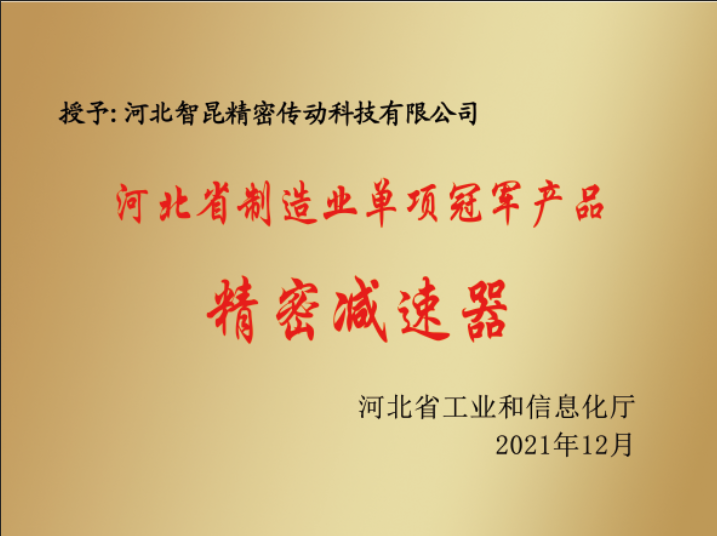智昆科技-“精密減速器”入選第三批河北省制造業(yè)單項冠軍產品